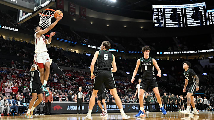 Arkansas is led by freshman Darius Acuff Jr., who's right-hand man is fellow freshman Meleek Thomas. That inexperience can often spell trouble for big-time programs in March Madness chaos. However, the freshman duo combined for 45 points and were Arkansas' two leading scorers in the Razorbacks' first-round win. That unwavering confidence even in their March Madness debut should instill faith in anyone who penciled in Arkansas to the Sweet 16 in their brackets.
